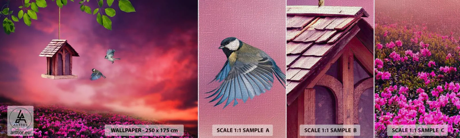 Vzor Fototapety Premium Canvas - Pozvání na večeři - Krajina, Květiny, Ptačí budka - 100x30 cm