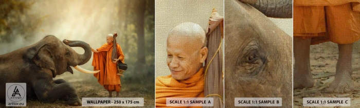 Vzor Fototapety Premium Canvas - Setkání na cestách - Asie, Slon, Mnich - 100x30 cm