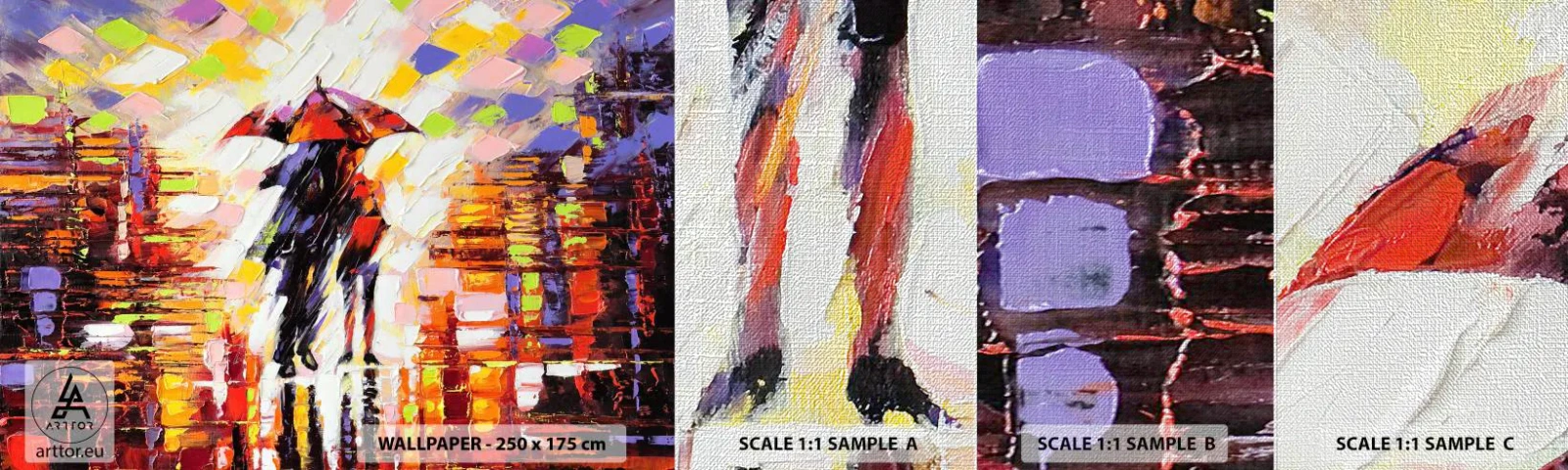 Vzor Fototapety Premium Canvas - Společně přes noc a déšť - Abstrakce, Zamilovaný pár, Procházka v dešti - 100x30 cm