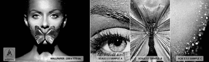 Vzor Fototapety Premium Canvas - Motýlí polibek - Abstrakce, Žena, Motýl - 100x30 cm