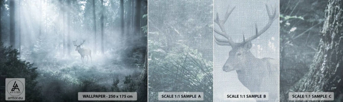 Vzor Fototapety Premium Canvas - Ranní obchůzka sídliště - Krajina, Les, Jelen - 100x30 cm