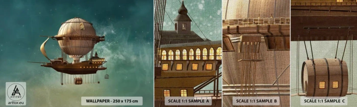 Vzor Fototapety Premium Canvas - Julius Verne zdraví - Retro, Výlet, Balón - 100x30 cm