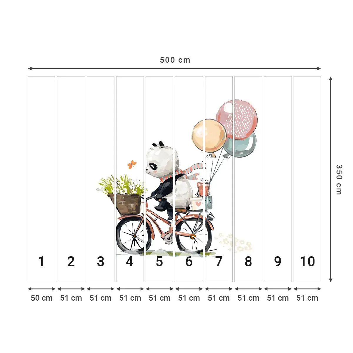 Fototapeta Samolepicí Deluxe Sticker - Šťastný den - Pro děti, Panda Na Kole, Abstrakce - 500x350 cm