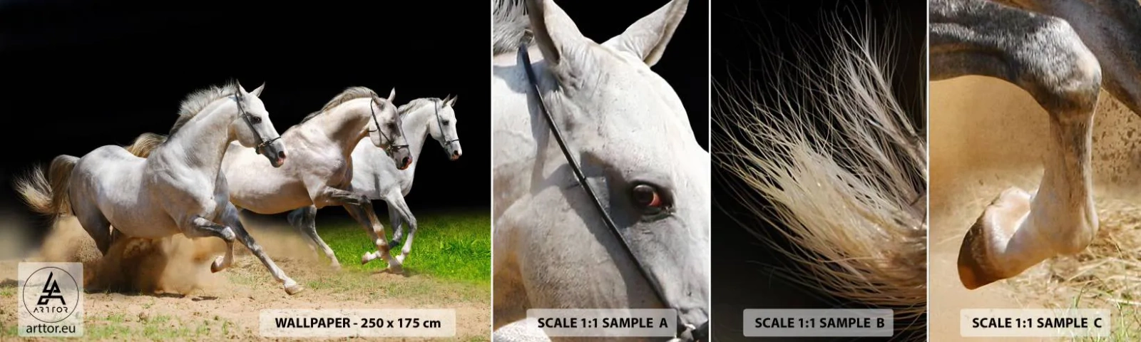 Vzor Fototapety Samolepicí Deluxe Sticker - Tři Grácie - Koně, Zvířata, Cval - 100x30 cm