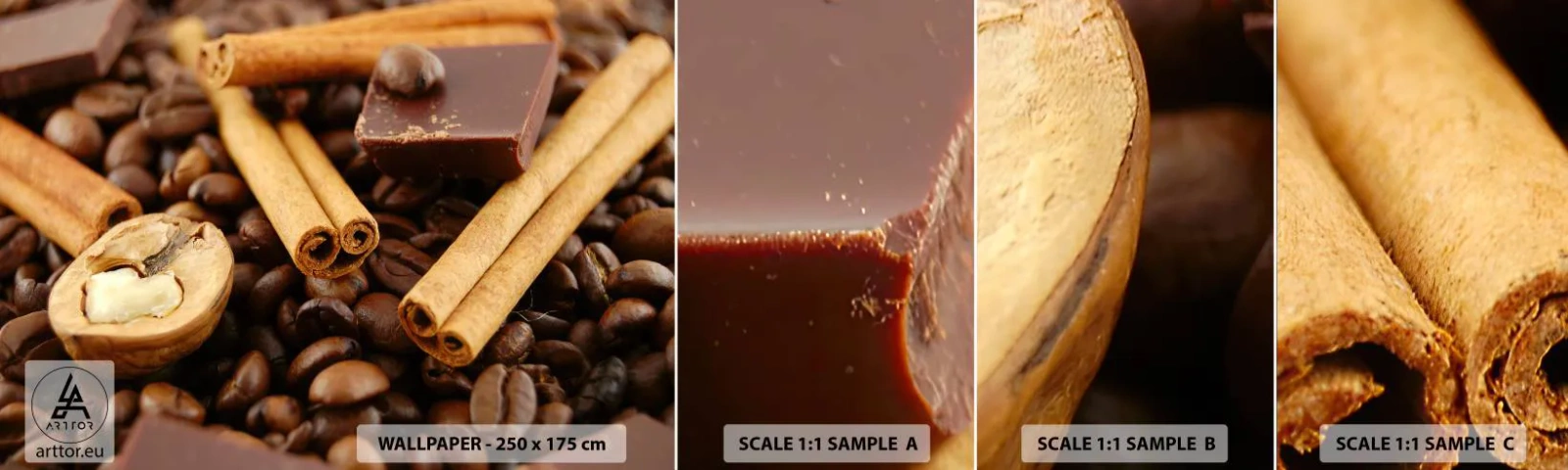 Vzor Fototapety Samolepicí Deluxe Sticker - Koncert vůní - Gastronomie, Čokoláda, Kávová zrna - 100x30 cm