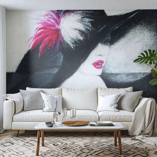 Fototapeta Samolepicí Deluxe Sticker - Vždy tajemství - žena V Klobouku, ženská tvář, červené rty - 150x105 cm