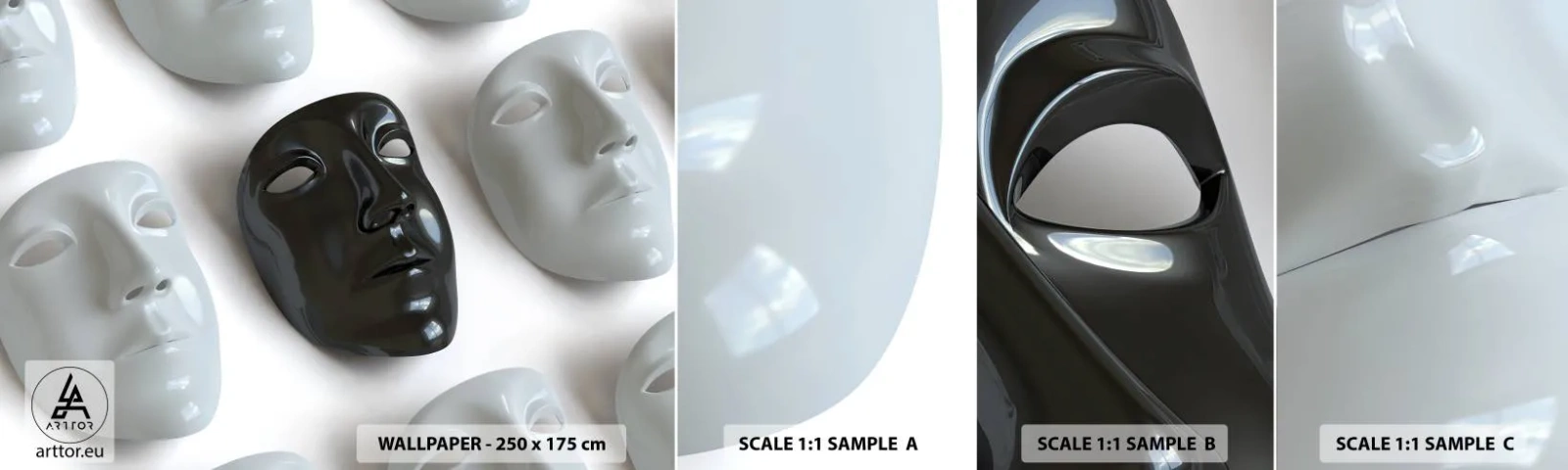 Vzor Fototapety Samolepicí Deluxe Sticker - Jak se odlišit? - Kus, Benátská maska, Černý a bílý - 100x30 cm