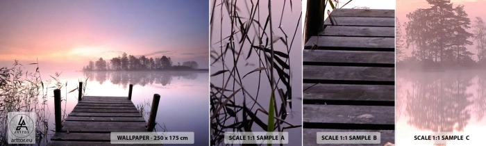 Vzor Fototapety Samolepicí Deluxe Sticker - Z liliové mlhy… - Krajina, svítání, jezero - 100x30 cm