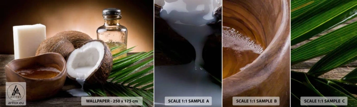 Vzor Fototapety Samolepicí Deluxe Sticker - Zdraví z tropických ostrovů - Kokosový ořech, Lázně, Kokosový olej - 100x30 cm