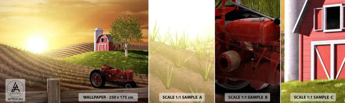 Vzor Fototapety Samolepicí Deluxe Sticker - Farma jako z pohádky - Farma, Krajina, Traktor - 100x30 cm