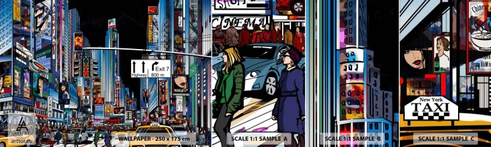 Vzor Fototapety Samolepicí Deluxe Sticker - Komiksová velká noc - Město, Architektura, New York - 100x30 cm