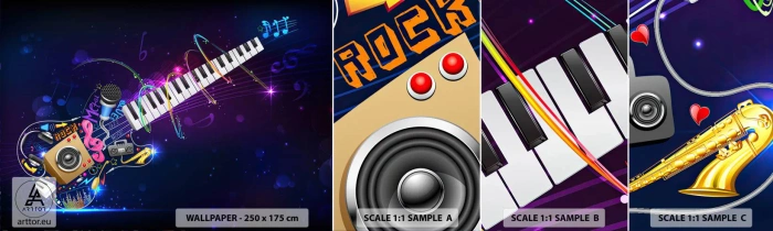 Vzor Fototapety Samolepicí Deluxe Sticker - A všechno hraje - Abstrakce, Hudební nástroj, Hudba - 100x30 cm