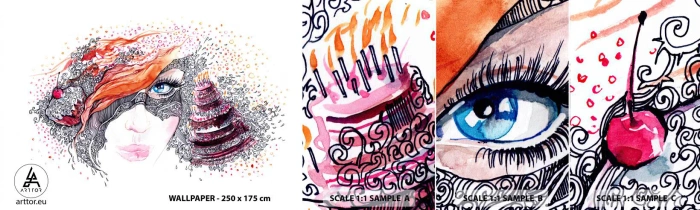 Vzor Fototapety Samolepicí Deluxe Sticker - S ní je každý den svátek - Abstrakce, ženská tvář, Dort - 100x30 cm