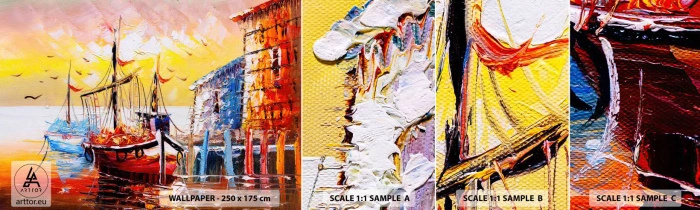 Vzor Fototapety Samolepicí Deluxe Sticker - Šťastný návrat - Krajina, Rybářský přístav, Lodě - 100x30 cm