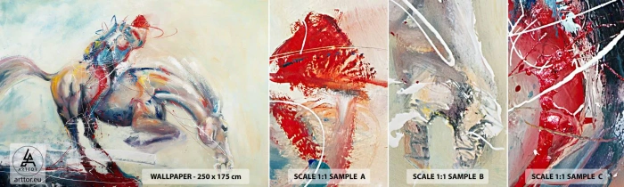 Vzor Fototapety Samolepicí Deluxe Sticker - Drž se, letíme - Zvířata, Kůň, Jezdec - 100x30 cm