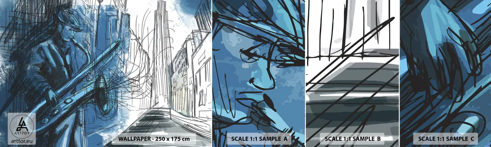 Vzor Fototapety Samolepicí Deluxe Sticker - Městská rapsodie - Saxofon, Jazz, Hudba - 100x30 cm