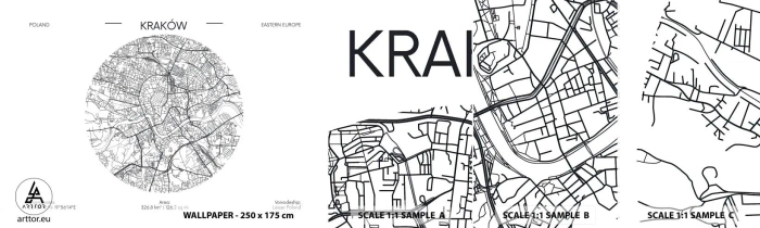 Vzor Fototapety Samolepicí Deluxe Sticker - Anatomie Krakova - Mapa, Krakov, Polsko - 100x30 cm