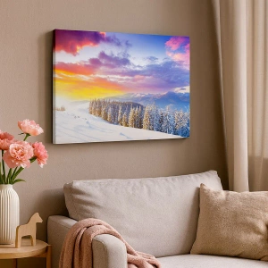 Plátno je nataženo na rám. Strany a hrany jsou potištěny, čímž tvoří pokračování obrazu. Obraz je připravený k zavěšení na zeď. Každý výrobek je vybaven závěsem, který je připevněn k rámu a montážní sadou (šroub + kolík).