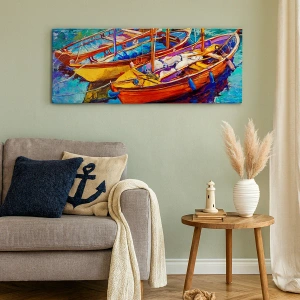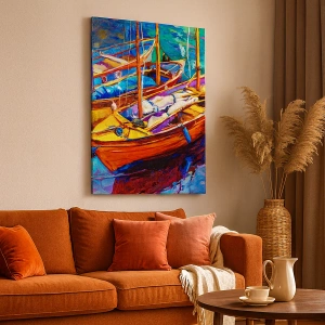 • Loď, Plachetnice, Moře, Námořní, Krajina, Cestování, Umění, Do kanceláře, Do pracovny, Do jídelny, Do koupelny, Do předsíně, Do obývacího pokoje, Do ložnice, Modrá, oranžová, barevná, Svislý
