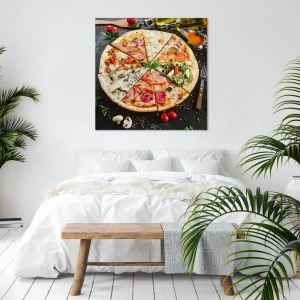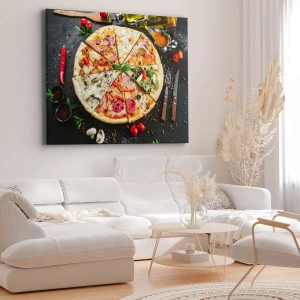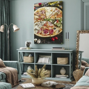 Nástěnný obraz - Škála chutí - Pizza v různých příchutích na pozadí s polevou