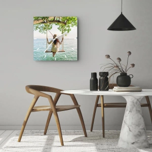 Nástěnné hodiny - Žena na houpačce u moře v letním prostředí - 30x30cm - Život je krásný - Moderní nástěnná dekorace do obývacího pokoje, kuchyně a ložnice ARTTOR