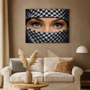 Obraz na plátně - Portrét zahalené zelenooké krásky - 100x40 cm