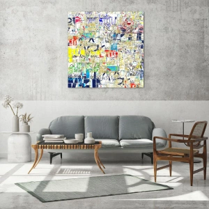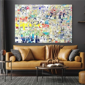 Tato abstraktní kompozice s mixem barev a nápisů vytváří jedinečnou atmosféru v každém interiéru. Může být také perfektním dárkem pro milovníky umění a jedinečných dekorací.