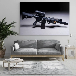 Tisk s vysokým rozlišením na skle zvýrazní každý detail a barvy budou syté a hluboké. To znamená, že obrázek nejen přitahuje pozornost, ale také se stává ústředním bodem interiérového designu. Černá útočná puška je dekorace, která evokuje emoce a inspiruje.