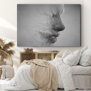 - Tento plátěný obraz zobrazuje profil obličeje s jemnými liniemi v monochromatickém stylu. Ideální pro moderní a minimalistické interiéry.
