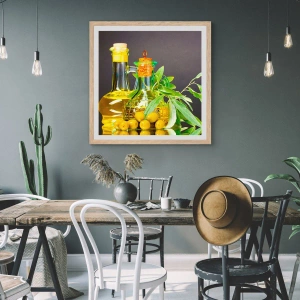Plakát v rámu světlý dub - Zátiší s olivami a olejem - 30x30 cm