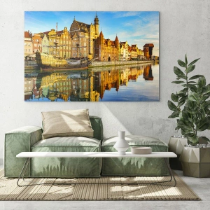Gdaňský motiv s odrazem ve vodě symbolizuje harmonii, historii a krásu přírody, které se spojují v jeden ucelený celek. Obraz inspiruje k zamyšlení nad historií města a zároveň do interiéru vnáší klidnou a vyrovnanou atmosféru.