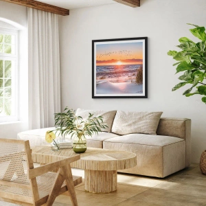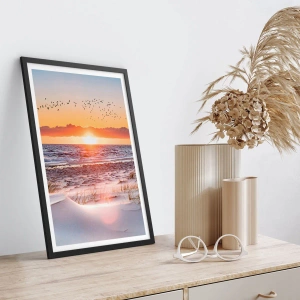 - Tento plakát zobrazuje západ slunce nad klidným mořem s ptáky na obzoru a písečnou pláží v pozadí. Teplé barvy a přírodní krajina vytvářejí jedinečnou harmonii. Dokonalá dekorace pro interiéry inspirované přírodou.