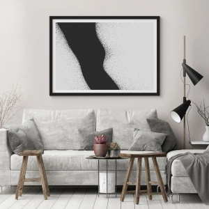 Plakát v černém rámu - Minimalistický tvar vlny v černé a šedé barvě se zrnitým efektem - 50x70cm - Plynulá rovnováha - Moderní nástěnná dekorace do obývacího pokoje a ložnice ARTTOR