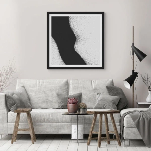 - Plakát „Liquid Balance“ se vyznačuje minimalistickým vlnovým designem v kontrastní černé a šedé barvě. Jeho výrazný zrnitý efekt a geometrická jednoduchost vnášejí eleganci a modernitu do každého interiéru.