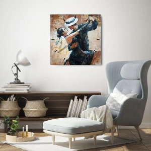 Nástěnné hodiny - Pár tančící v elegantních oblecích, s kloboukem a dynamickou pózou - 30x30cm - A la Rudolf Valentino - Moderní nástěnná dekorace do obývacího pokoje, kuchyně a ložnice ARTTOR