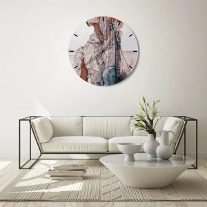 Nástěnné hodiny - Děti květin na cestách - Boho styl s kytarou na pozadí pláže a květinovými šaty