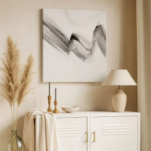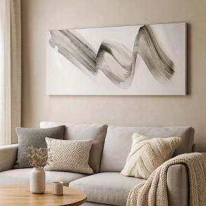 - Tento plátěný tisk zobrazuje abstraktní tah štětcem v černé a bílé barvě na světlém pozadí. Je ideální do minimalistických interiérů, dodává harmonii a stylový nádech.