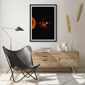 Plakát v černém rámu - Sluneční soustava s planetami na pozadí vesmíru - 50x70cm - Naše čtvrť - Moderní nástěnná dekorace do obývacího pokoje a ložnice ARTTOR