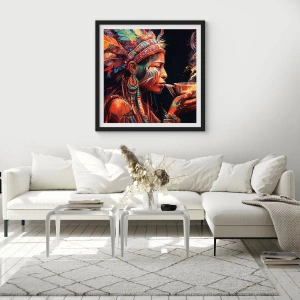 Plakát v černém rámu - Portrét ženy v tradiční péřové čelence - 50x70cm - Magický rituál - Moderní nástěnná dekorace do obývacího pokoje a ložnice ARTTOR