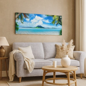 Obraz „Rajská pláž s výhledem na ostrov“ je perfektní volbou pro interiéry, které evokují relaxační atmosféru dovolené. Je ideální do obývacího pokoje, ložnice nebo odpočinkové zóny.