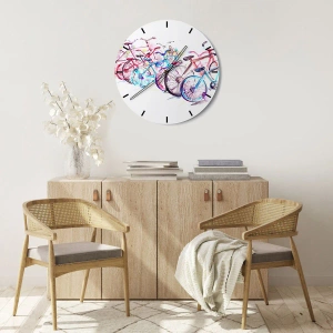 Hodiny jsou vyrobeny z bezpečného tvrzeného skla o tloušťce 4mm. Technologie výroby hodin je v souladu s třídou bezpečnosti 2B2 podle normy PN-EN 12600:2004, která garantuje odolnost proti nárazům. Hodiny na skle jsou připravené k zavěšení – mají kovový závěs upevněný na zadní částí hodin a pěnovou distanční podložku, která upravuje vzdálenost hodin od zdi. Hodiny mají tichý plovoucí mechanismus napájený 1,5V baterií - AA baterie (baterie není součástí balení).