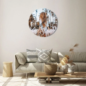 Tyto kulaté skleněné nástěnné hodiny o rozměrech 30x30 cm budou vynikající volbou do interiérů zařízených v boho, rustikálním nebo tropicky inspirovaném stylu. Díky přírodní scenérii a přítomnosti ženské siluety se motiv obzvláště hodí do ložnic nebo obývacích pokojů, kde plní nejen praktickou, ale i dekorativní funkci.