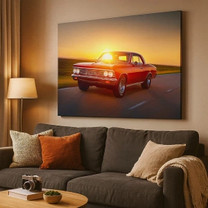 Motiv klasického auta je také skvělým dárkem pro automobilové a designové nadšence. Dynamická kompozice obrazu přitahuje pozornost a vnáší do interiéru nádech vášně a elegance. Je to dekorativní prvek, který kombinuje funkčnost s estetikou a bezchybným stylem.