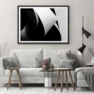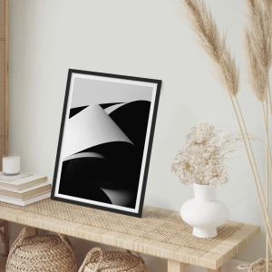 - Plakát představuje elegantní černobílou kompozici, kde světlo a stín vytvářejí abstraktní tvary. Minimalistický design a geometrické formy dodávají interiéru moderní charakter.