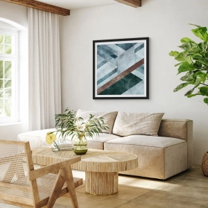 Plakát v černém rámu - Geometrická kompozice v odstínech modré a hnědé - 50x70cm - Sofistikovaná elegance geometrie - Moderní nástěnná dekorace do obývacího pokoje a ložnice ARTTOR