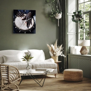 Hodiny jsou vyrobeny z bezpečného tvrzeného skla o tloušťce 4mm. Technologie výroby hodin je v souladu s třídou bezpečnosti 2B2 podle normy PN-EN 12600:2004, která garantuje odolnost proti nárazům. Hodiny na skle jsou připravené k zavěšení – mají kovový závěs upevněný na zadní částí hodin a pěnovou distanční podložku, která upravuje vzdálenost hodin od zdi. Hodiny mají tichý plovoucí mechanismus napájený 1,5V baterií - AA baterie (baterie není součástí balení).