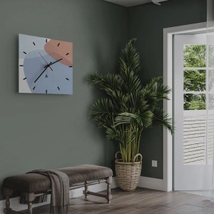 Nástěnné hodiny - Abstraktní tvar v modré a terakotové barvě na světlém pozadí. - 30x30cm - Pastelové vztahy - Moderní nástěnná dekorace do obývacího pokoje, kuchyně a ložnice ARTTOR