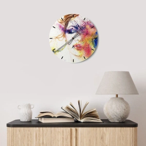 - Tyto nástěnné hodiny zobrazují abstraktní portrét ženy v barvách duhy. Jsou ideální pro milovníky umění a originálních dekorací a vnášejí harmonii a umělecký výraz do každého interiéru.