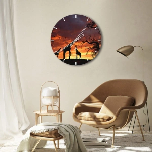 Nástěnné hodiny - Malá večeře s vašimi blízkými - Siluety žiraf na pozadí afrického západu slunce