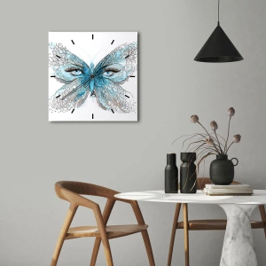 Nástěnné hodiny - Modrý motýl - Modrý motýl s detaily očí a jemným uměleckým vzorem